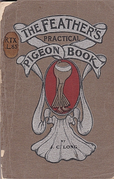 THE FEATHERS PRACTICAL PIGEON BOOK by J.C. Long, circa 1903 (possibly a First Edition).fantastic b/w illustrations, Soft cover, 168 pages, 7.5 by 5 inches. This book has been reprinted many times. It is an x-library book. Both covers are separated. The book is complete. The interior is in good condition. I think this book is an excellent candidate for rebinding............$100.00